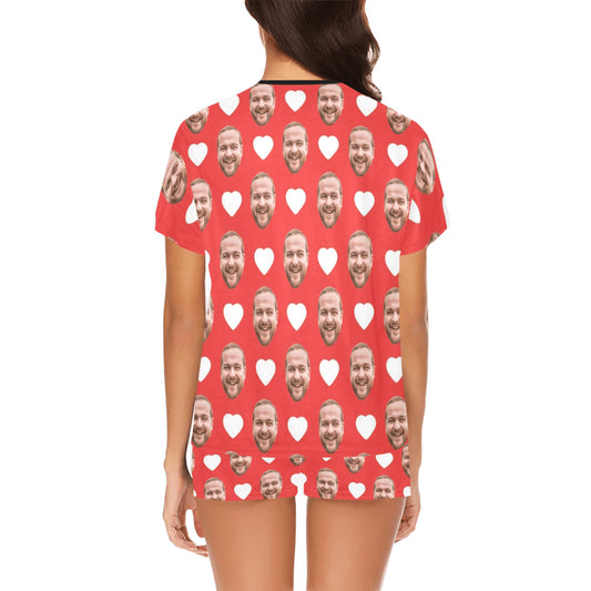 Custom Love Heart Face Pajamas | Personalized Photo Women's Short Pajama Set Special Gift