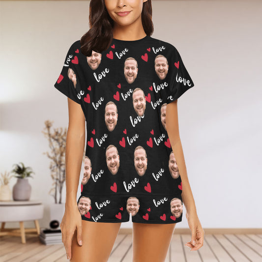 Custom Love Face Pajamas | Personalized Women's Short Pajama Set Unique Birthday Gift