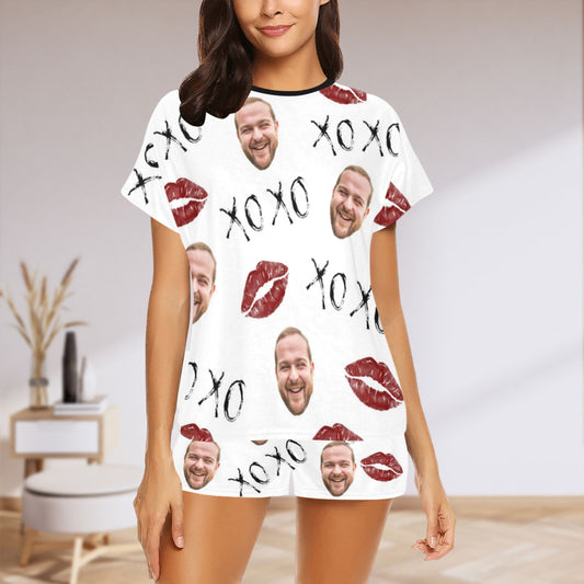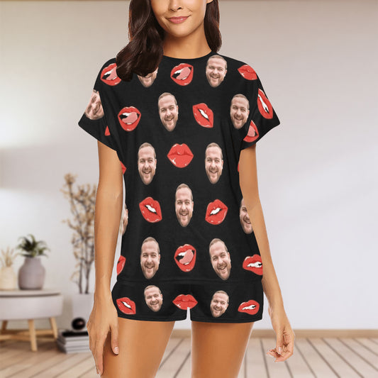 Custom Lip Love Face Pajamas | Personalized Women's Short Pajama Set For Lovers