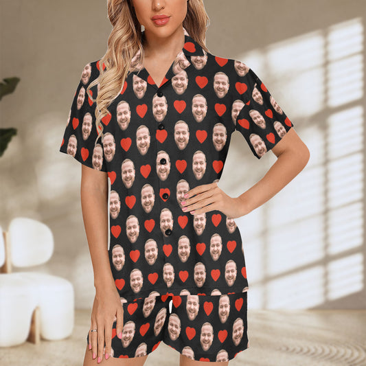 Custom Love Heart Face Pajamas | Personalized Photo Women's Short Pajama Set Special Gift
