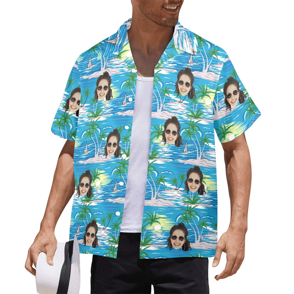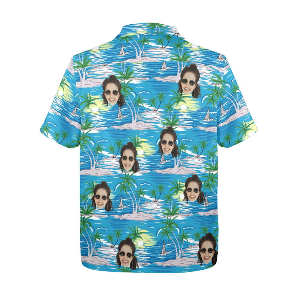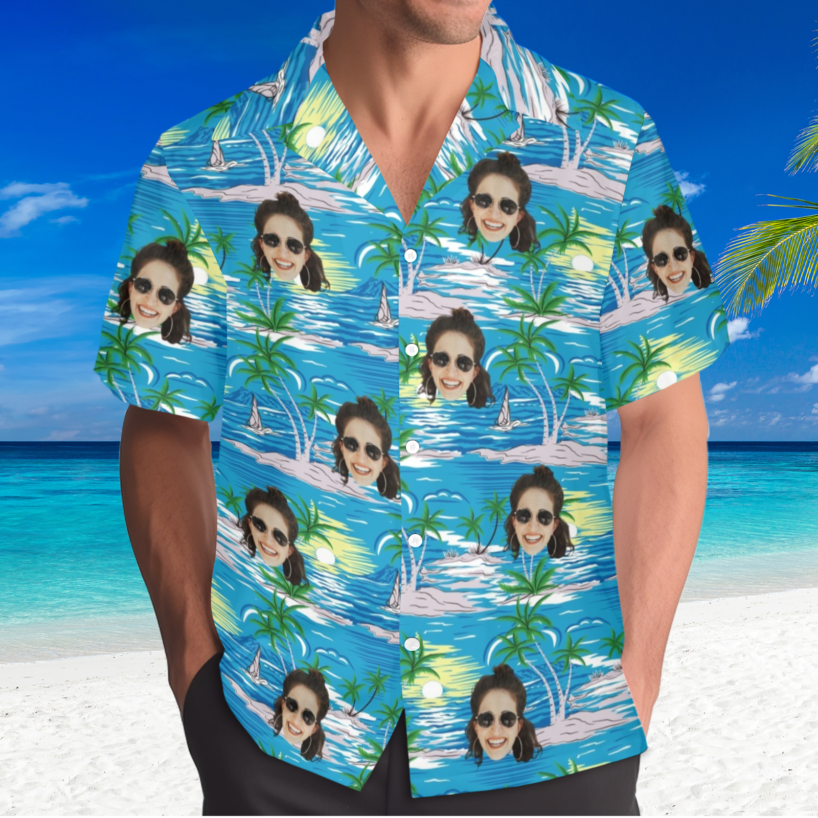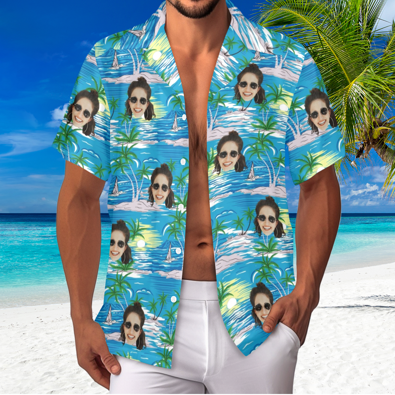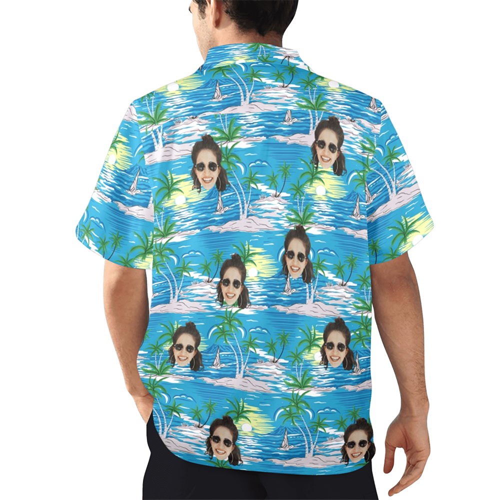 Custom Face Blue Sea&Island Hawaiian Shirt | Personalized Tropical Aloha Shirt For Vacation/Holiday