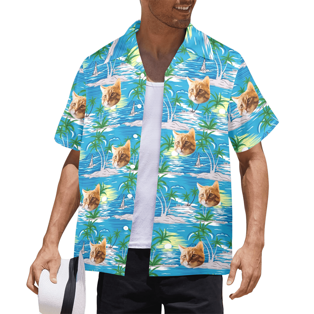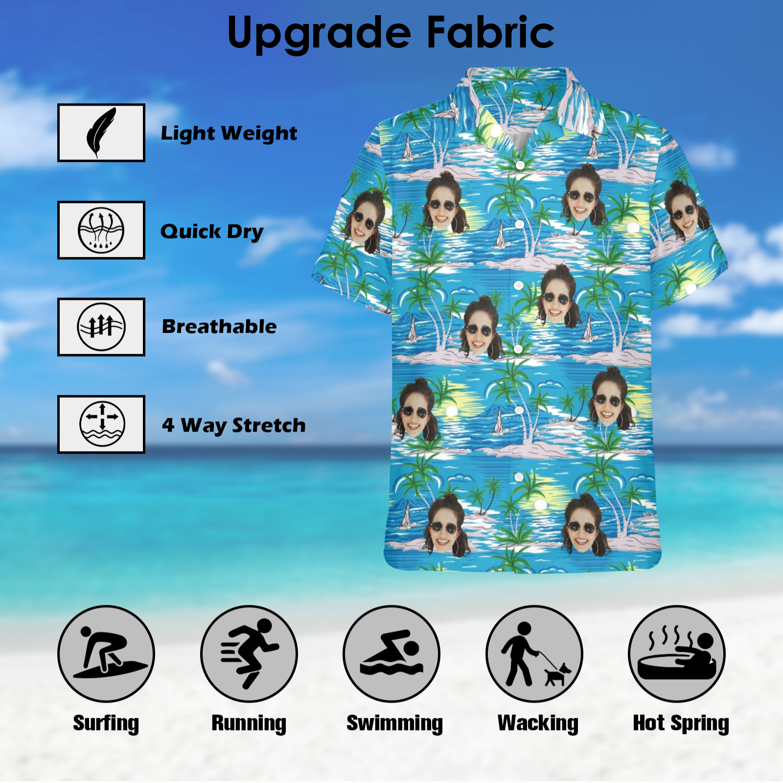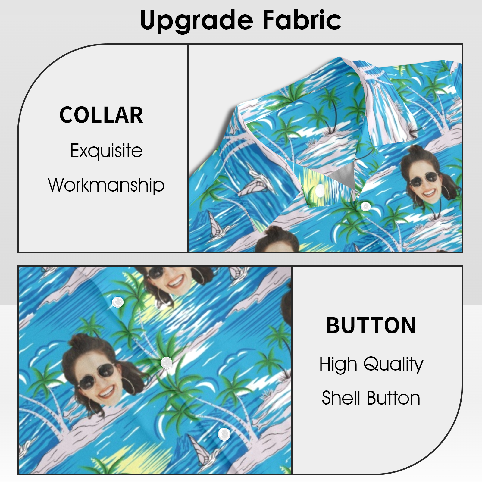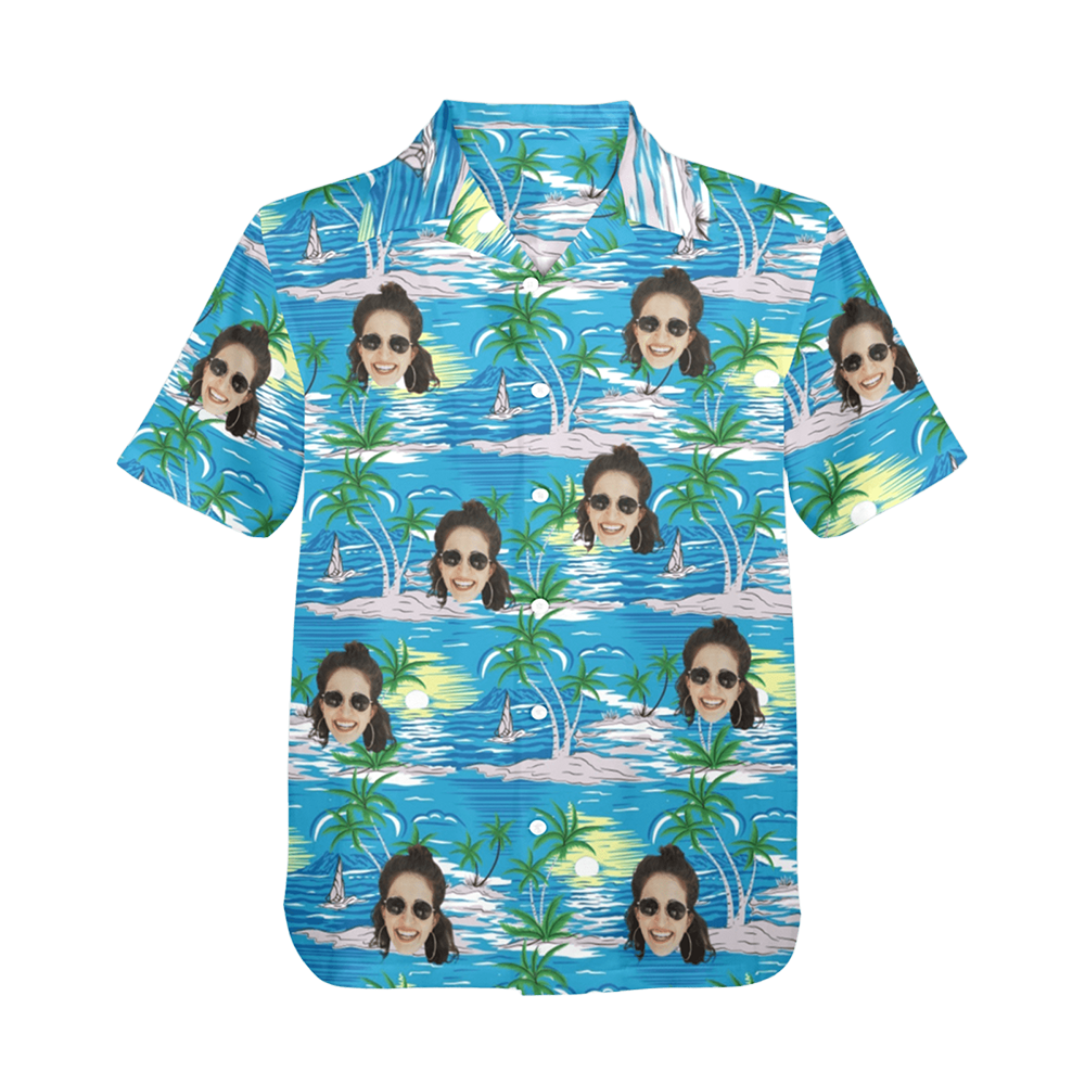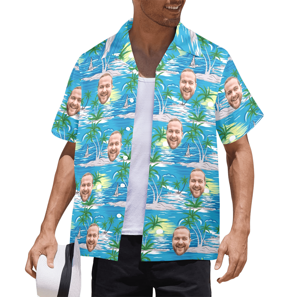 Custom Face Blue Sea&Island Hawaiian Shirt | Personalized Tropical Aloha Shirt For Vacation/Holiday