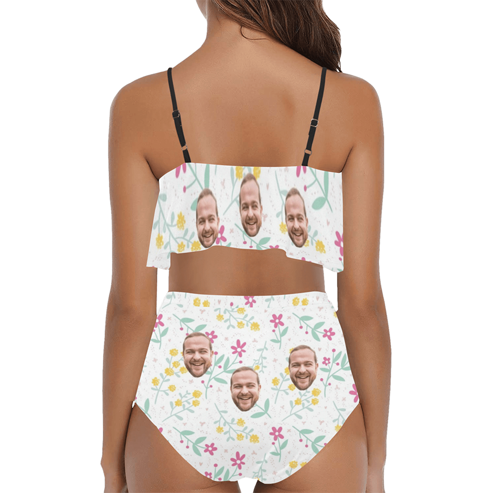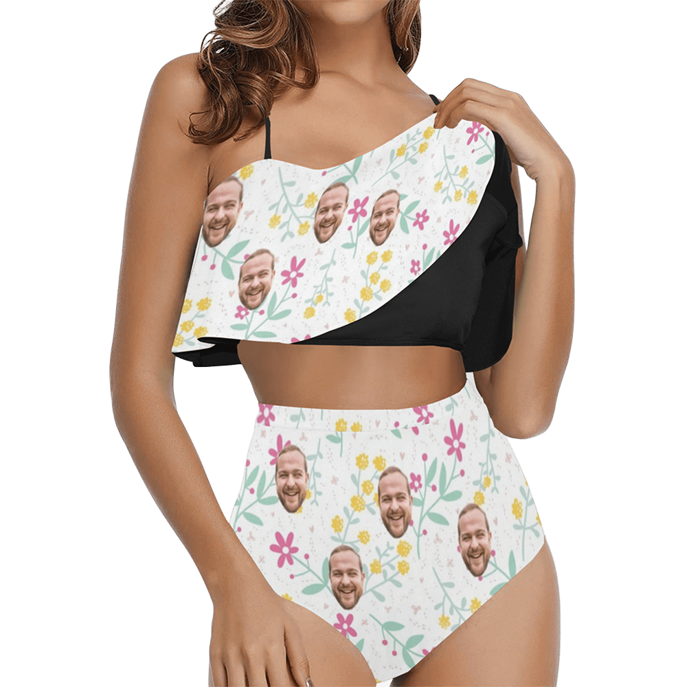 Custom Face Flower Swimsuit | Unique Women's Two Piece High Waisted Ruffle Bikini Holiday Party