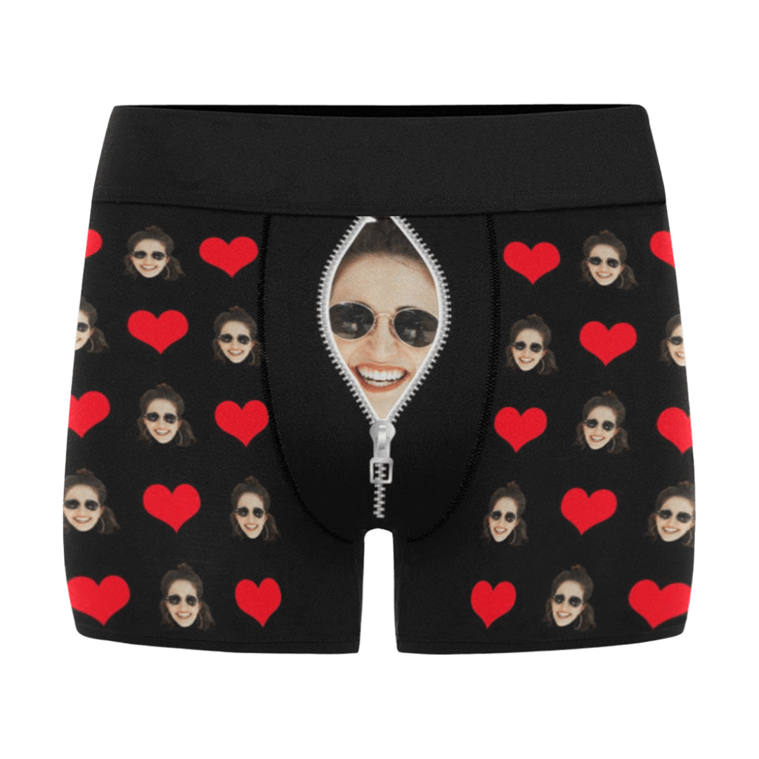 Custom Face Zip Heart Underwear | Personalized Photo Men's Boxer Briefs For Birthday/Christmas Gifts