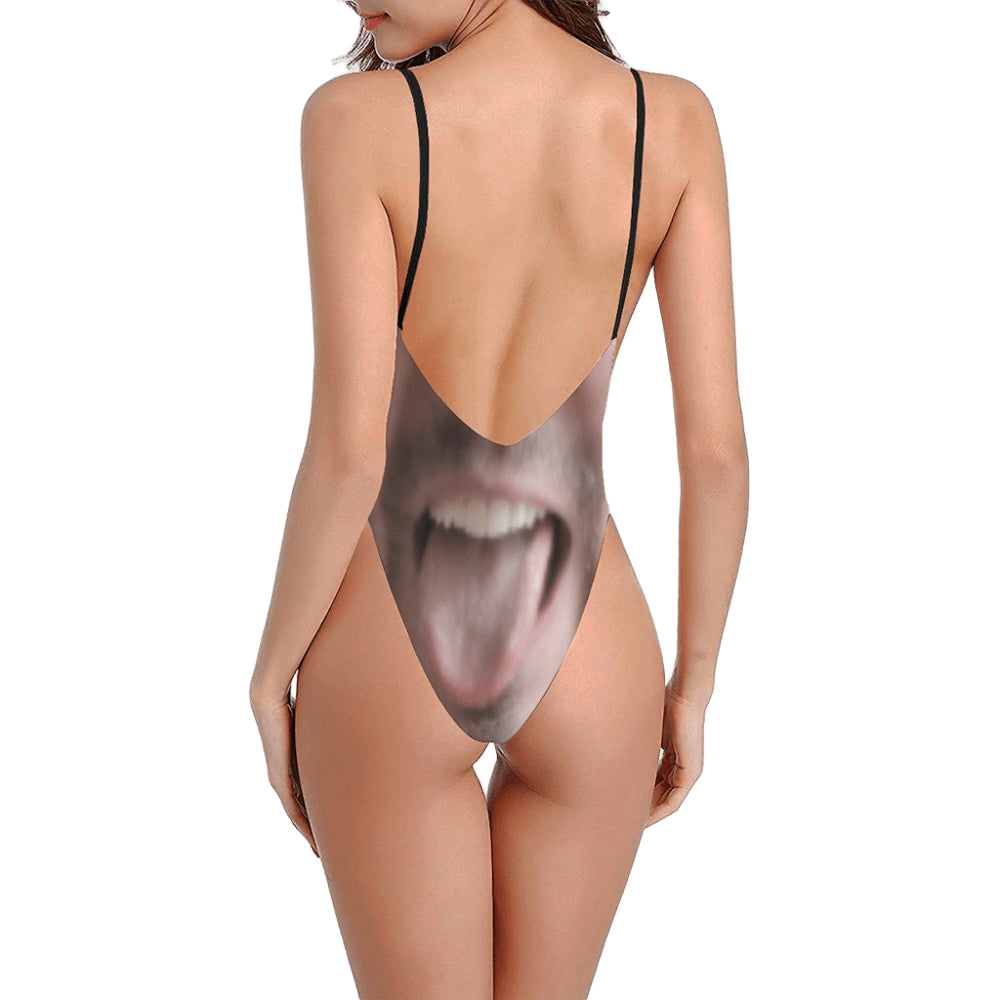 Custom Tongue Face Swimsuit | Personalized Women's Halter Straps Backless Swimsuit Boat Trip